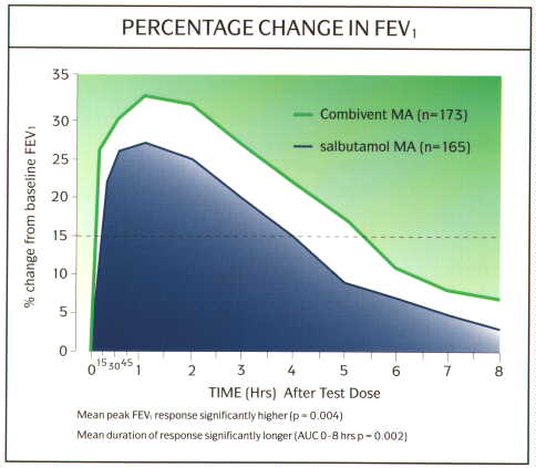 Fig. 11: Graph efficacy and duration of action of Combivent MA vs salbutamol alone