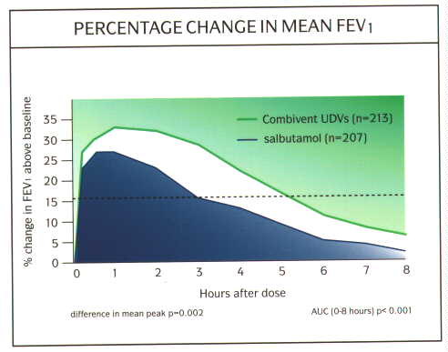 Fig. 12: Graph of efficacy and duration of action of Combivent UDV vs salbutamol